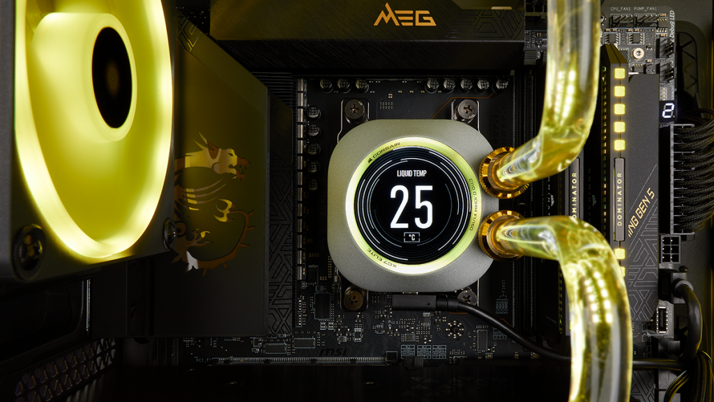 For those looking to add even more personalization to their system, the iCUE XC7 RGB ELITE LCD CPU Water Block shares the same design and cooling performance, with the addition of a crisp 2.1” 30 FPS IPS LCD screen with 480×480 resolution surrounded by 31 RGB LEDs.* The screen is fully programmable via iCUE software to display system temps, custom images, or animated GIFs.